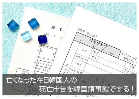在日韓国人のご家族が亡くなられた場合、日本の役所へ死亡届を提出した後、韓国領事館への死亡申告をする必要があります。