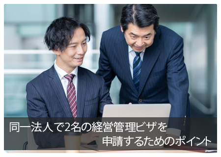 既存の会社にはすでに役員がいるため、申請人が新たに役員として就任する場合には、申請人の役割や具体的な経営業務、そしてなぜ現経営陣ではなく申請人が必要なのか、といった合理的な理由が確認されます。